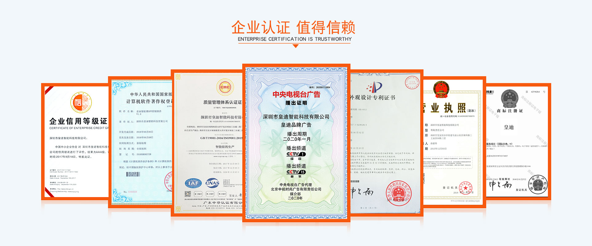 深圳市皇迪智能科技有限公司,是一家集產(chǎn)品研發(fā)、制造、銷售、安裝、售后于一體的全產(chǎn)業(yè)鏈公司,我司專注于酒店刷卡鎖、公寓藍牙密碼鎖、電子鎖、密碼鎖研發(fā),生產(chǎn),銷售.是國家高新技術企業(yè),公司已通過ISO9001/2015標準認證,并擁有多項國家實用新型專利、外觀專利及計算機軟件著作權; 皇迪玻璃門鎖廠家一直秉承“以顧客為中心,以人為本,長期艱苦奮斗”的經(jīng)營理念,為全球每一位消費者提供舒適,便捷,安全的高品質(zhì)生活。